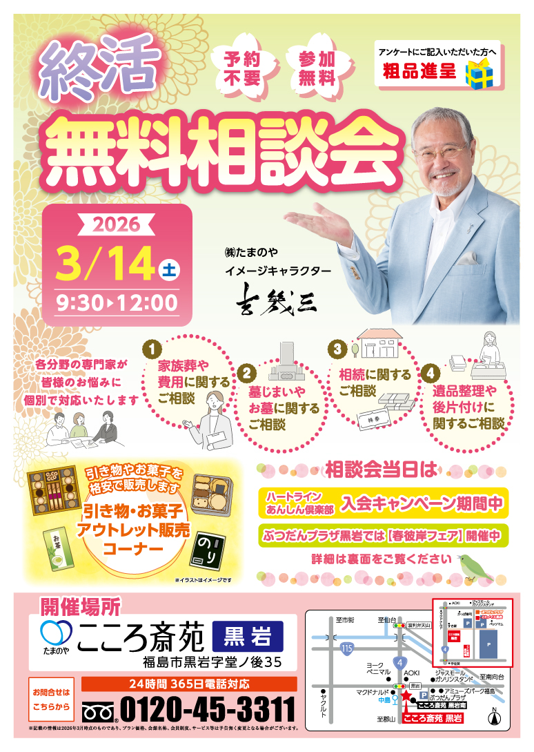 タイトル 予約不要の終活無料相談会(こころ斎苑 黒岩)