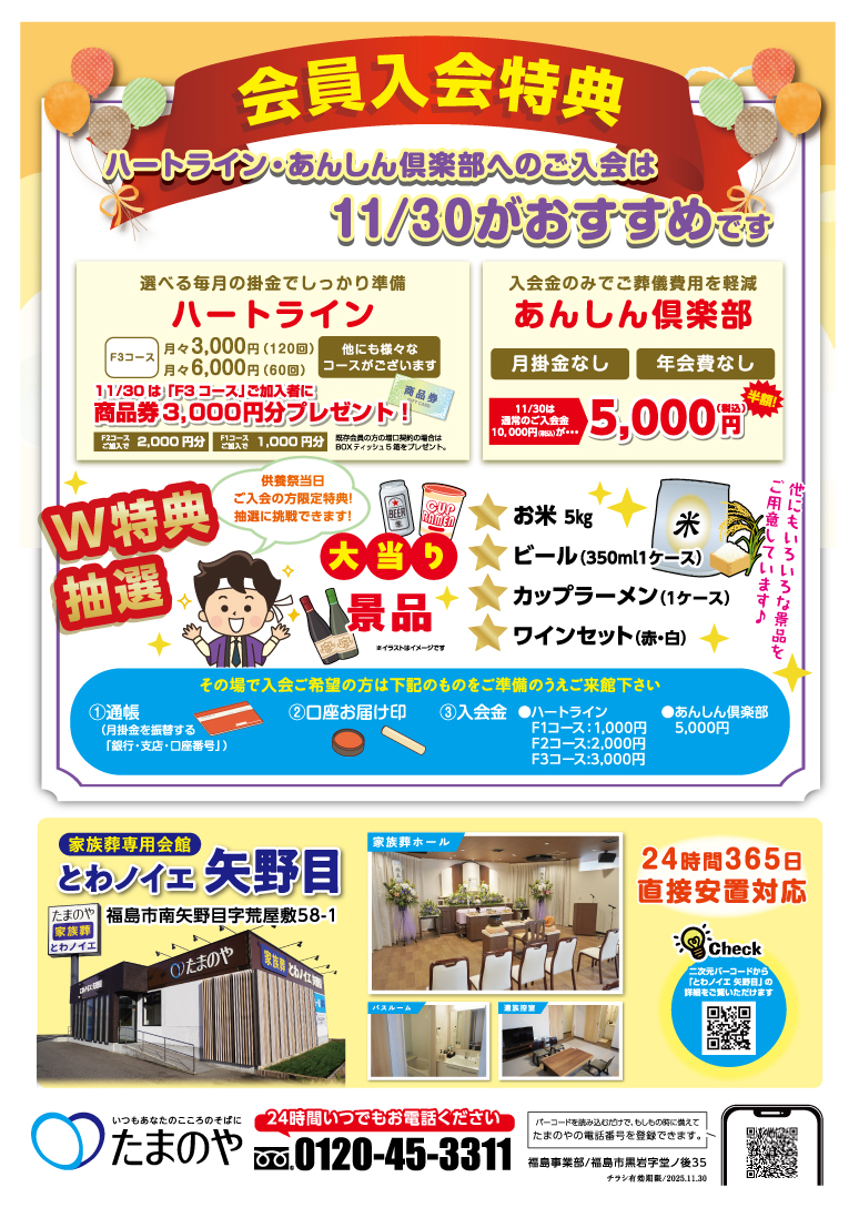 | 申し込み | たまのや福島事業部 0120-45-3311 |