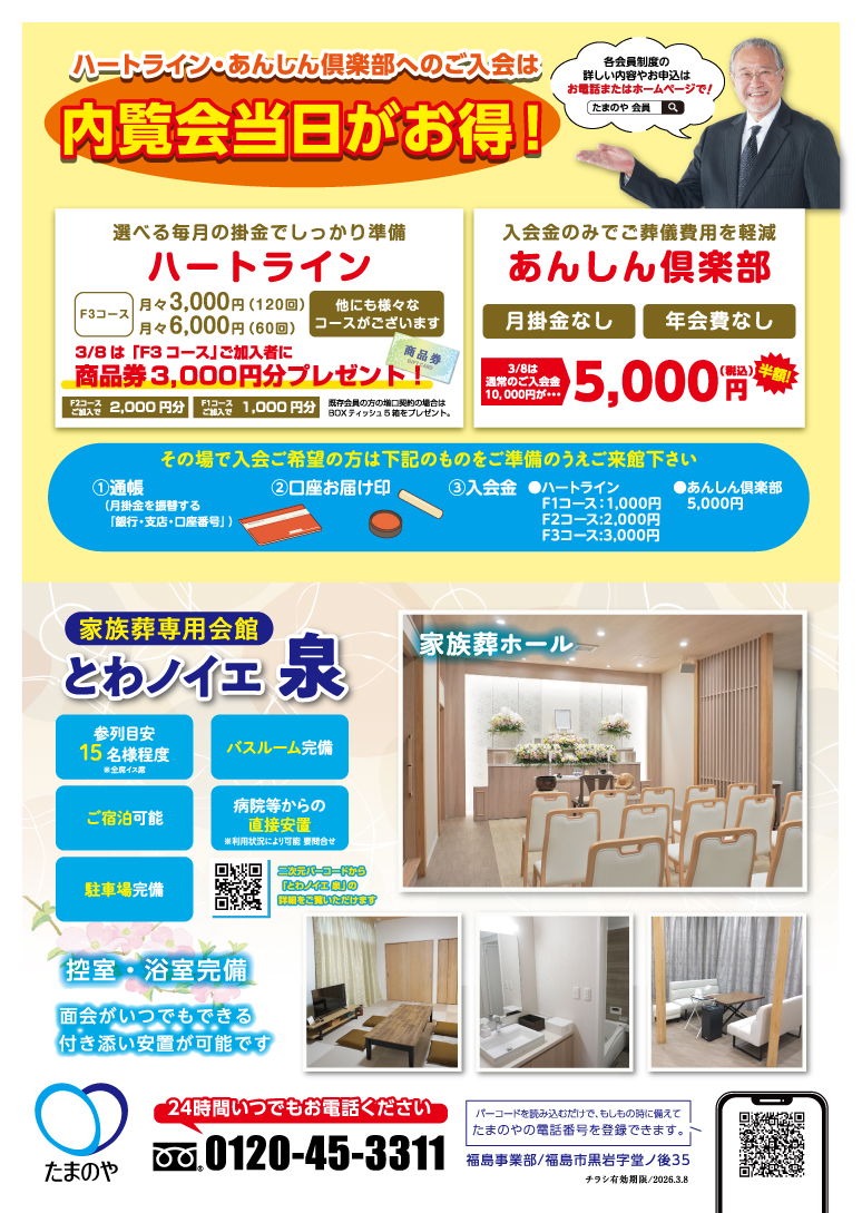 | 申し込み | たまのや福島事業部 0120-45-3311 |