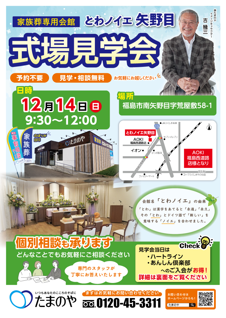【家族葬専用会館「とわノイエ 矢野目」式場見学会】開催