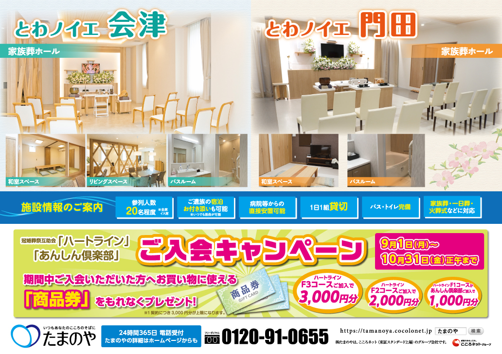【家族葬専用会館 選べる2カ所の事前相談会「とわノイエ 会津 とわノイエ門田」開催】
