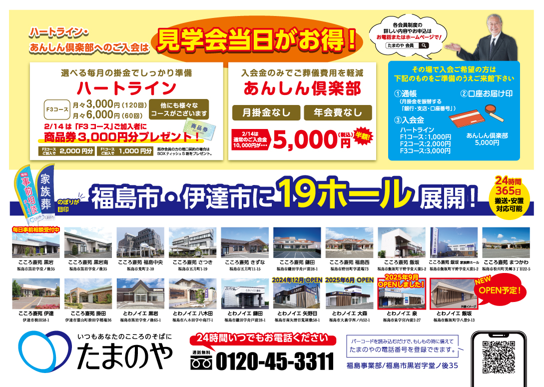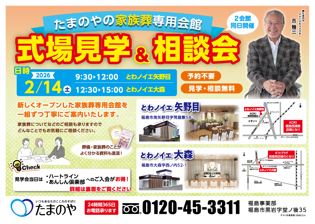 | 申し込み | たまのや福島事業部 0120-45-3311 |