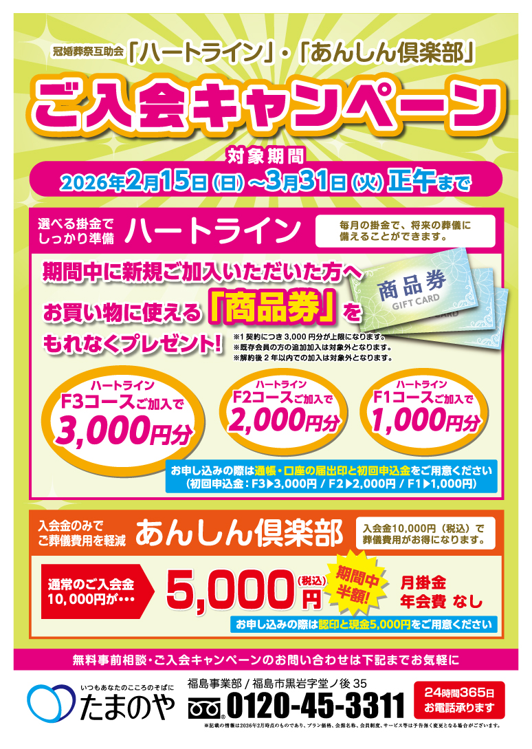 申し込み たまのや福島事業部 0120-45-3311