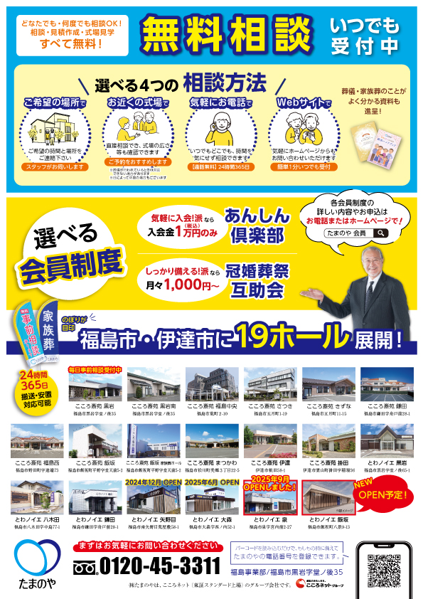 福島市・伊達市に多数のホールを展開しておりますので、ご自宅近くの会館にご安置が可能。